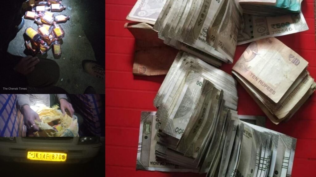 As per the police sources, on the evening of 5 December, a vehicle Tata Sumo bearing Registration No. JK 14F-8708 was carrying one bottle and 26 quarter liqour pouches (250ml) were caught red handed. However, police sources added that there was no cash in the vehicle and the same is rumour.