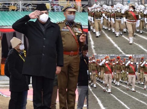Advisor to Lieutenant Governor, Baseer Ahmad Khan Tuesday unfurled the Tricolor and took salute at the march-past during Republic Day celebration at S.K stadium, Srinagar. Later, the Advisor inspected the parade on the occasion.