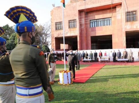 Chief Justice High Court of Jammu and Kashmir, Justice Pankaj Mithal, unfurled the national flag and took salute from Jawans of paramilitary and police at Jammu Wing of the High Court.