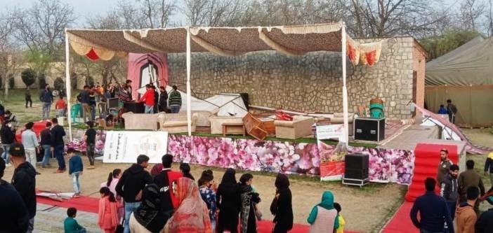 Witnesses told KNO, that the administration had organized a musical show at the garden to mesmerize the visitors for which popular singers were invited that include Abdur Rashid Hafiz, Shazia Bashir and others. “The situation took an ugly turn when a boy from the audience demanded a song of his choice be played. His request got delayed after which he grabbed the microphone to which musical team objected and asked the boy to wait. However, some irate youth jumped on to the stage and vandalized it. Some musical instruments were also broken while sign boards were torn apart,” a witness said.