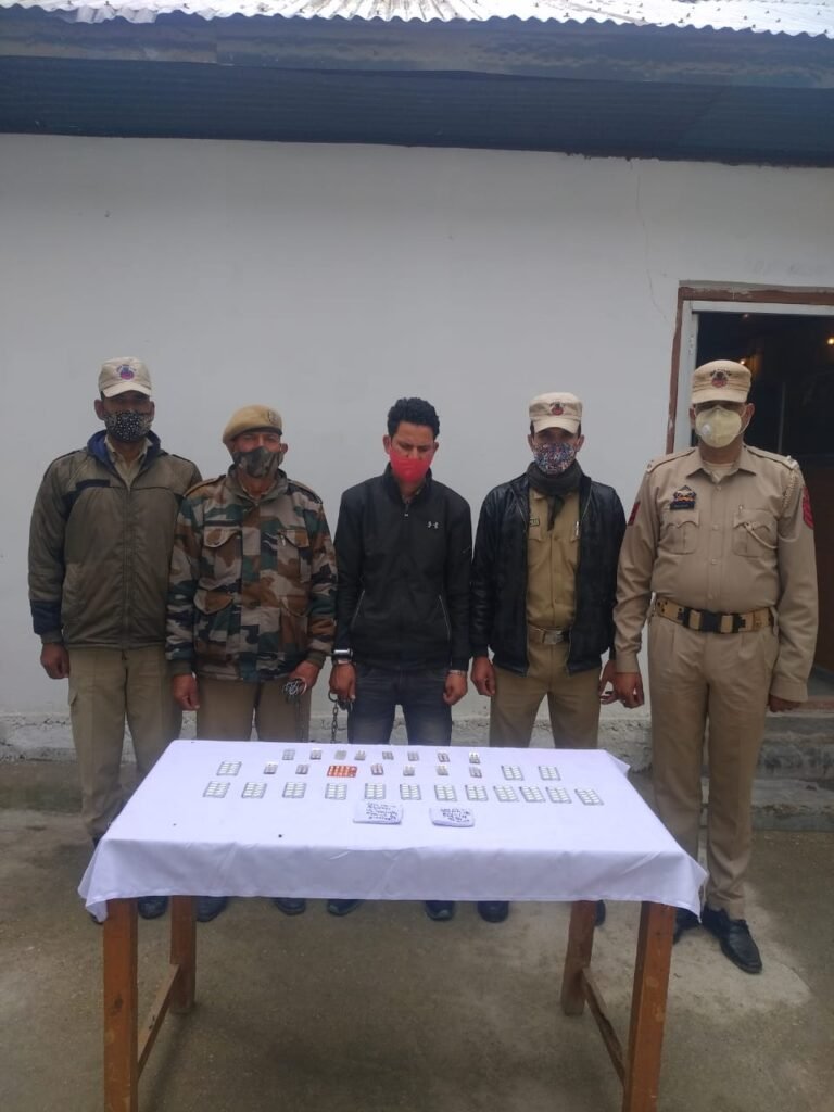 While divulging detail DySP Hqrs Kishtwar Devinder Singh Bandral, said that the police had develop a specific information of sale and purchase of drug. Acting on this information a special team led by Insp Abid Bukhari SHO PS Kishtwar rushed to his shop situated at Shakti Nagar apprehended one notorious drug paddler namely Mohd Iqbal S/O Bashir Ahmed R/O Keshwan AP Shopkeeper at Shaktinargar Kishtwar. On search of his shop, 40 strips having 300 tablets of Psychotropic substance like Tramadol Tab 16 Strip, Nexito 0.5 6 Strip, Zapiz 0.25 6 strip, Zapiz 0.5. 1 strip, Alzopam 0.5 1 strip and 20 grm Cannabis (charas) like substance from his possession.