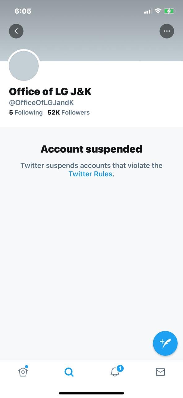 Twitter Inc. has suspended official handle of incumbent Lieutenant Governor of Jammu and Kashmir Manoj Sinha.