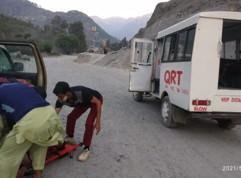 Officials told KNO that a vehicle (Innova) bearing registration number HR55J-1678 met with an accident at Duggi Pulli in Chanderkot.