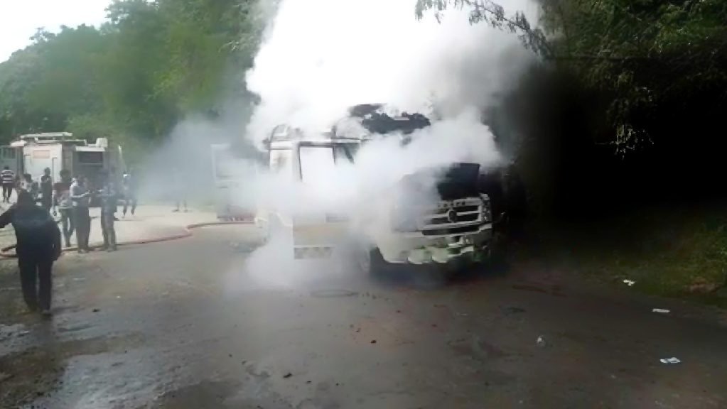 A police official told Kashmir-based news agency Kashmir News Observer that an ambulance transporting a patient from Bandipora to Srinagar caught fire near Ajas when its engine overheated.