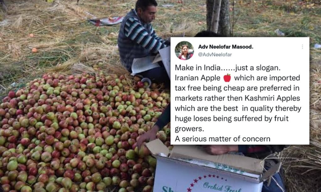 Terming it a “serious matter of concern,” Adv Neelofar Masood, who is a well-known news TV panellist as NC Leader and president of Women’s wing NC for Baramulla district, tweeted on Monday and said, “Make in India……just a slogan. Iranian Apple 🍎 which are imported tax free being cheap are preferred in markets rather then Kashmiri Apples which are the best in quality thereby huge loses being suffered by fruit growers. A serious matter of concern.”