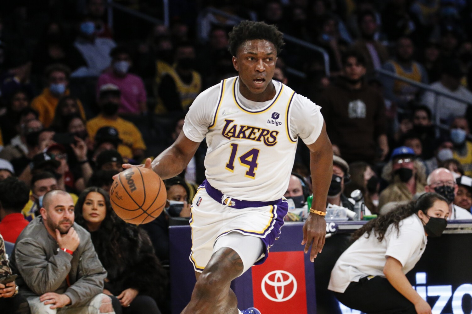 Johnson, who attended Santa Ana‘s Mater Dei High, averaged 6.8 points, 2.8 rebounds, 1.4 assists and 1.0 steals in 25.2 minutes during five games, three starts, with the Lakers this season.