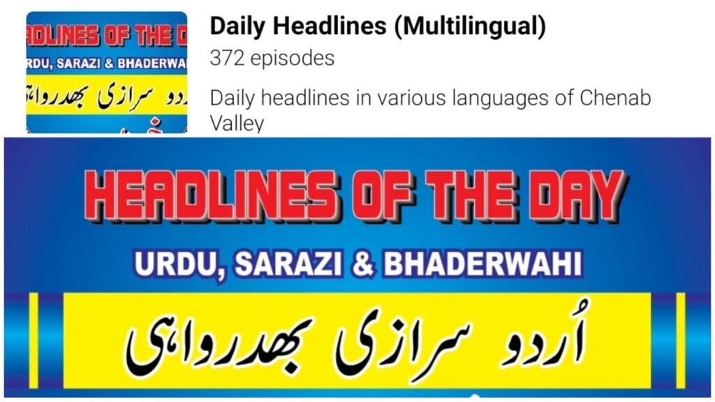 The Chenab Times started an initiative to provide daily news headlines in the local languages of the Chenab region in January 2021 and is currently broadcasting the news in Sarazi and Bhaderwahi along with Urdu as additional support for these languages for easy understanding.