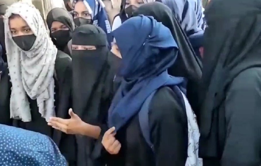 The students’ contention is that why bar them from entering the college now, while they have been attending classes in the hijab for long.
