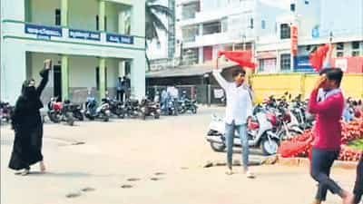 The altercation was videotaped, and the video has since gone viral on social media and been broadcast on several television news channels. In the alleged video, the girl is seen walking towards the college after parking her two-wheeler when a procession of saffron-scarfed students charge towards her, yelling “Jai Shri Ram.” She screams “Allah hu Akbar” back at them, unfazed.