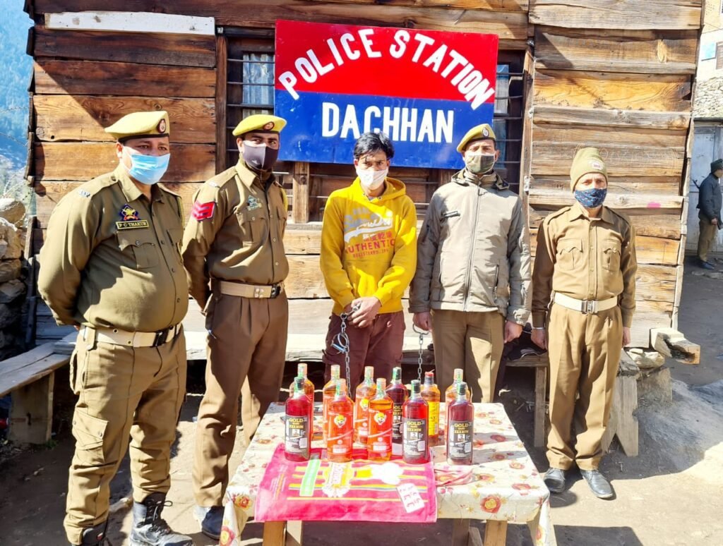 Kishtwar Police of Police Station Dachhan detained a bootlegger during a routine Naka Check in the Dachhan Soundar area as part of its anti-vagabond campaign.