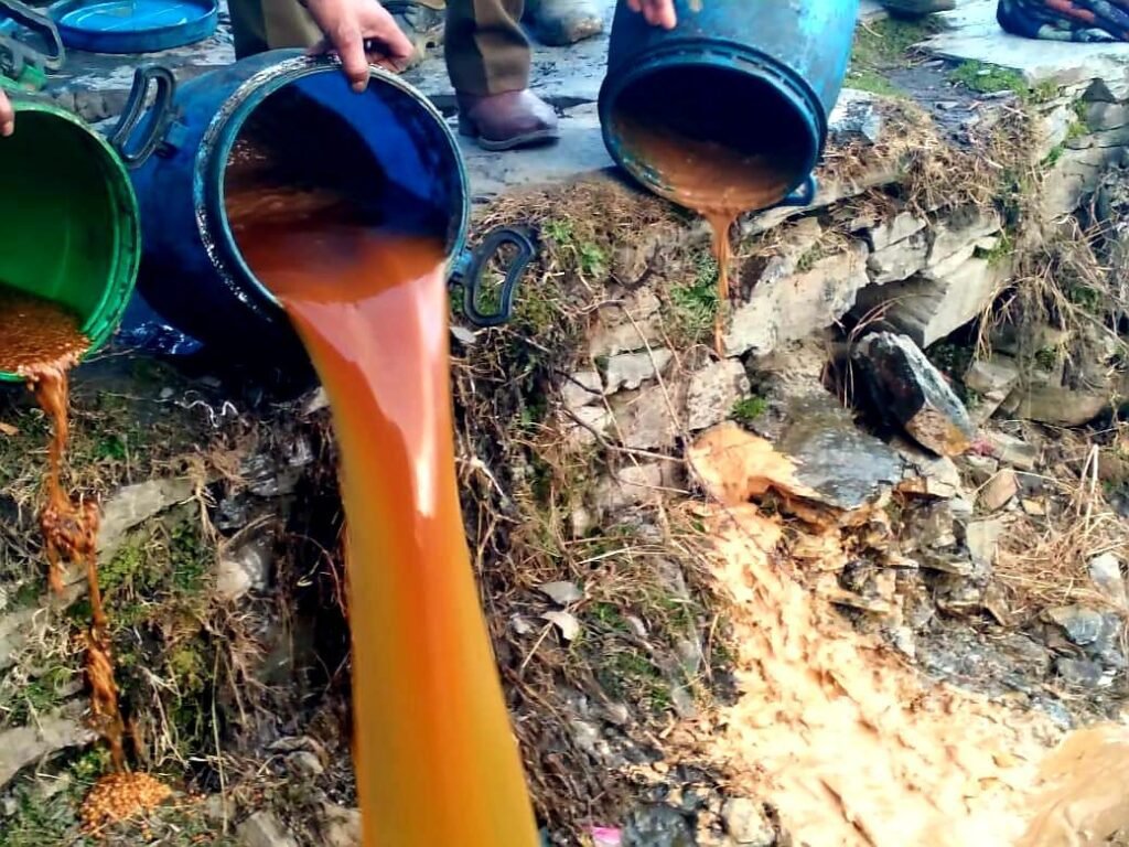 Amid the continuation of the war against drugs and illicit liquor, police destroyed a 60-litre lahan prepared for the distillation of Desi liquor in the Doda district’s Changa area of Gandoh.