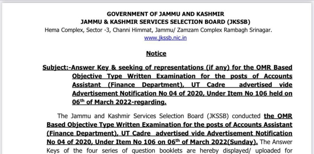 Now we are providing details such regarding this and things candidates are allowed to do after the release of JK Finance Accounts Assistant Answer Key.