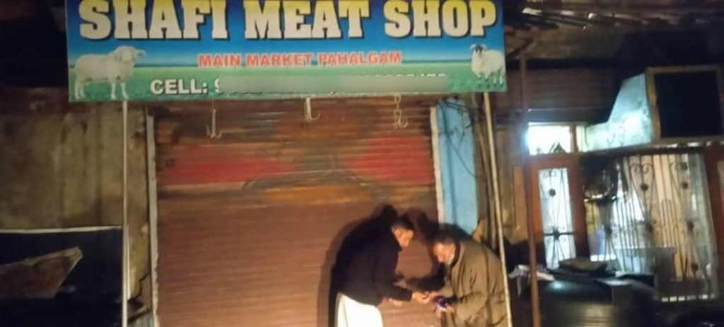 In presence of President MC Pahalgam Owais Nazir and Executive Officer Mir Tafveez , Mehraj Lone, Mohd Afzal, Nisar Ahmad and Rouf Wani MC Pahalgam, Shafi Meat shop has been sealed after pictures of a dog roaming in his meat shop had gone viral. Strict action as mandated under law would follow against the said meat shop.