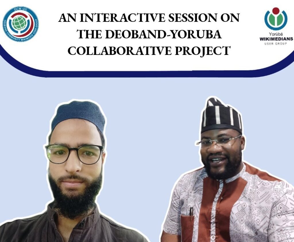 The Deoband Yoruba Collaborative Project is a joint initiative of the Yoruba Wikimedians User Group and the Deoband Community Wikimedia. The project intends to integrate “Yoruba-related” content on the Urdu Wikipedia as well as content pertaining to worldwide Deobandi scholarship on the Yoruba language Wikipedia. On May 26, 2022, the proposal received official approval during an interactive session in which Aafi and Olatunde Isaac took part.