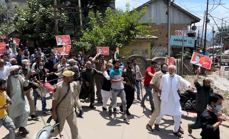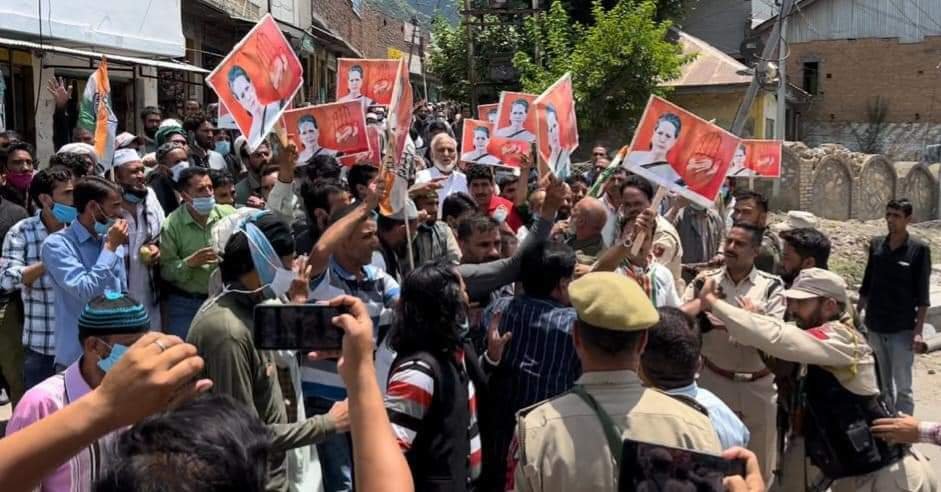 The Congress held a massive protest demonstration led by former minister of Jammu and Kashmir, G.M. Saroori, at Kishtwar, which marched towards the DC office. The protest was held against ED’s summons to Congress President Sonia Gandhi, as Saroori terms the summons as a part of the vendetta politics of the Modi government. The protest was foiled by police and stopped midway.