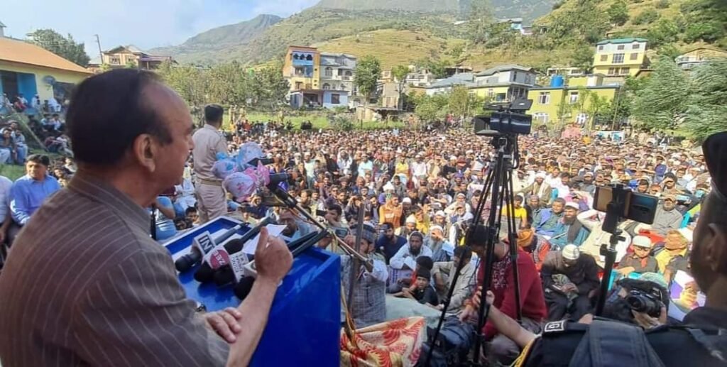 Addressing a large public rally at Drabshalla in district Kishtwar today, Azad said he was pained to know that thousands of local youth are being ignored for jobs in the new hydel projects and many outsiders are being given preference. Even the small and big contracts are being accorded to the outsiders and hundreds of labourers in these power projects have been brought from outside UT of J&K.
