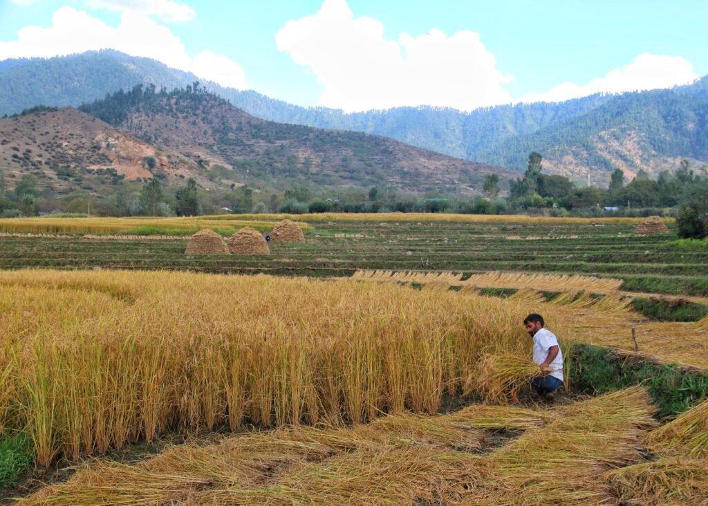 Rice (locally in Kashmir called Tomul) has been the staple food of larger sections of the Kashmir valley since times immemorial. It is one of the chief crops that ripens In autumn, locally known as Harud, Harud in Kashmir begins in the middle of September with green leaves turning slowly into golden brown. The rice harvest sets off the Harud spirit. Being a staple food of the valley, it is a primary source of calories in people’s diets compared to wheat and maize.