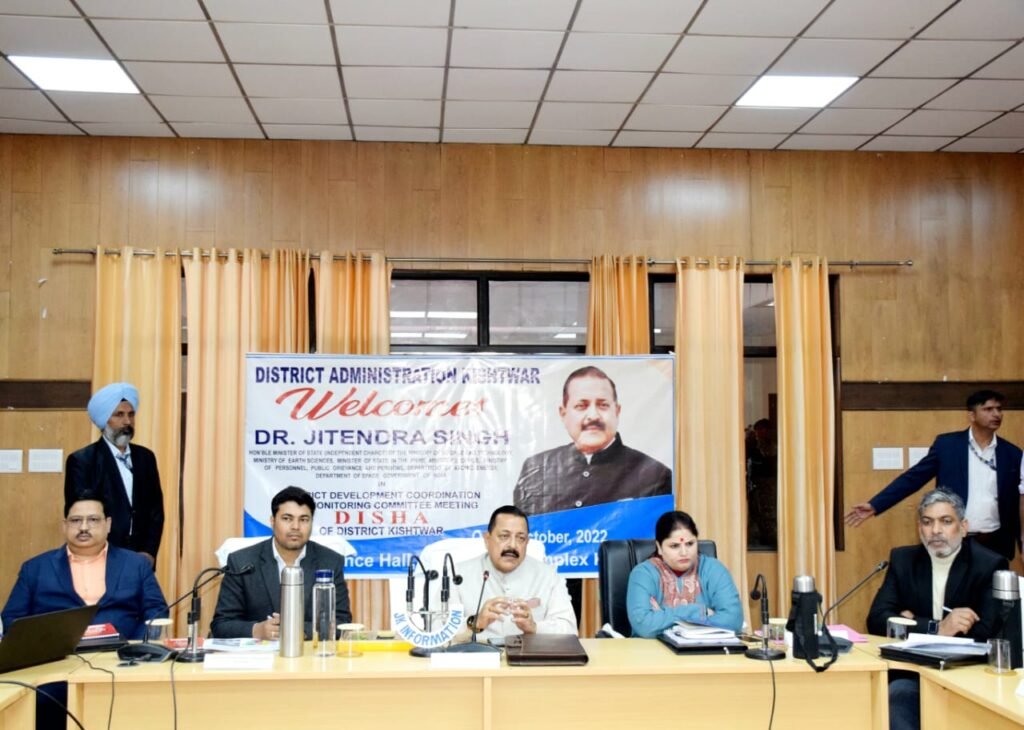 Union Minister of State (Independent Charge) Science & Technology and Earth Sciences; MoS PMO, Personnel, Public Grievances, Pensions, Atomic Energy and Space, Dr Jitendra Singh today chaired District Development Coordination & Monitoring Committee (DISHA) meeting to review progress of various Centrally Sponsored Schemes (CSS) being implemented in Kishtwar district.