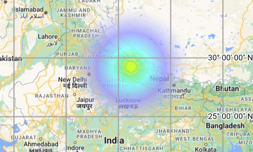 According to news agency PTI who quoted an IMD official, the quake began in Nepal at a depth of 10 kilometres in Latitude 29.28 N and Longitude 81.20 E.