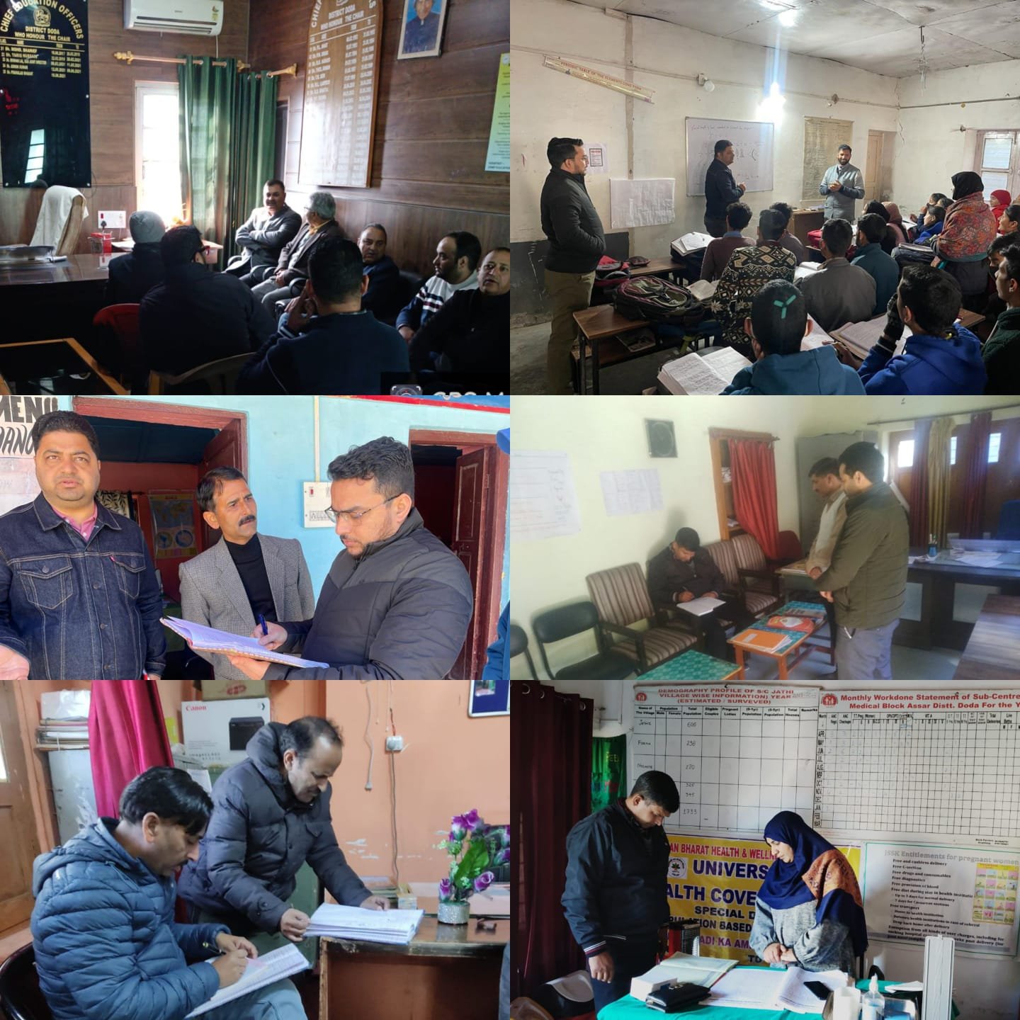 To evaluate the public service delivery in the government offices including Schools and Hospitals, District Administration Doda under the Directions of DC Doda Vishesh Paul Mahajan conducted inspection of all the government offices, schools and hospitals across the district. ADM (ADC Doda) inspected the offices in Doda town, while ADM (ADC Bhaderwah) inspected offices in the Bhaderwah town. All SDMs and Tehsildars visited the government establishments of their respective jurisdiction.