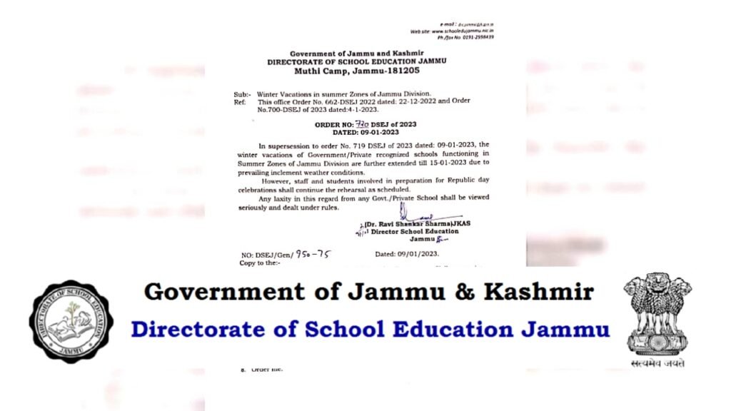 DSEJ in previous order had said, “All Government and recognised Private Schools of Summer zone of Jammu Division shall observe winter vacation from 26-12-2022 to 04-01-2023.”