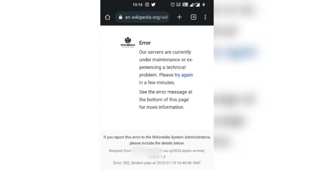 The Wikimedia Foundation has not released any official statement regarding the cause of the server error until this report is being filed.