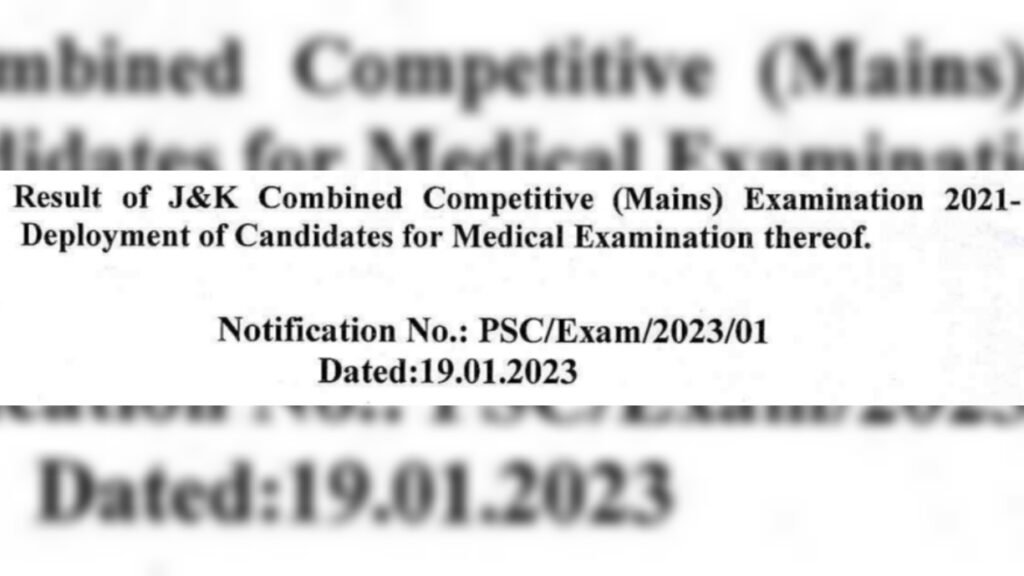 The Jammu and Kashmir Public Service Commission (JKPSC) has declared the results of the Combined Competitive Examination (CCE) 2021 for the Jammu and Kashmir Administrative Service (JKAS) and has announced the deployment of candidates for medical examination. According to a notification dated January 19, 2023, obtained by The Chenab Times, the commission revealed that 187 posts were referred to the JKPSC by the General Administration Department to be filled through the CCE.