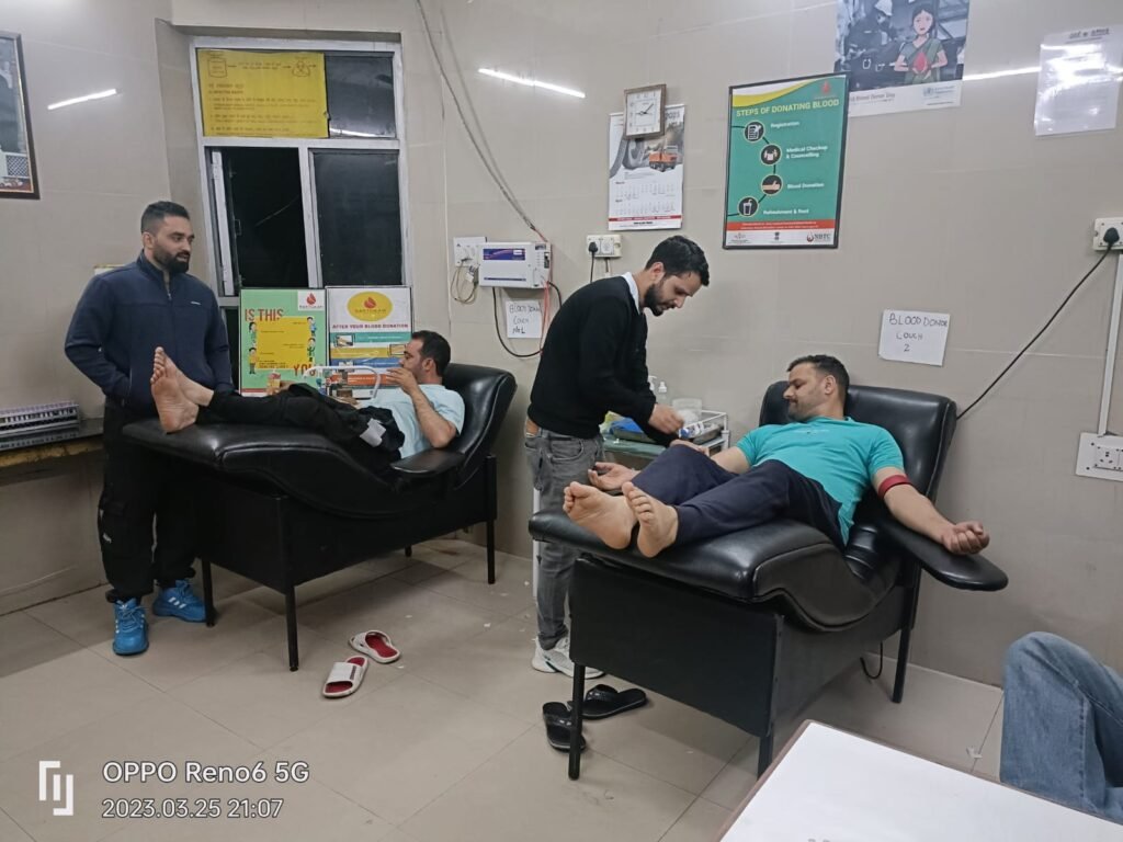 The director of “the Anti-Corruption And Crime Bureau Of India Forum” (ACCBIF), Arif Hussain, and his team of volunteers recently organised a blood donation camp at Sri Maharaja Gulab Singh Hospital (SMGS) in Jammu. The event was aimed at raising awareness about the importance of blood donation and encouraging people to participate in the cause.