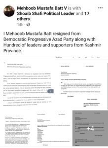 In a surprising turn of events, Mehboob Mustafa Batt, the State Secretary of the Democratic Progressive Azad Party (DPAP) and the nephew of former senior Congress leader Ghulam Nabi Azad, has resigned from the party along with hundreds of leaders and supporters from the Kashmir Province.