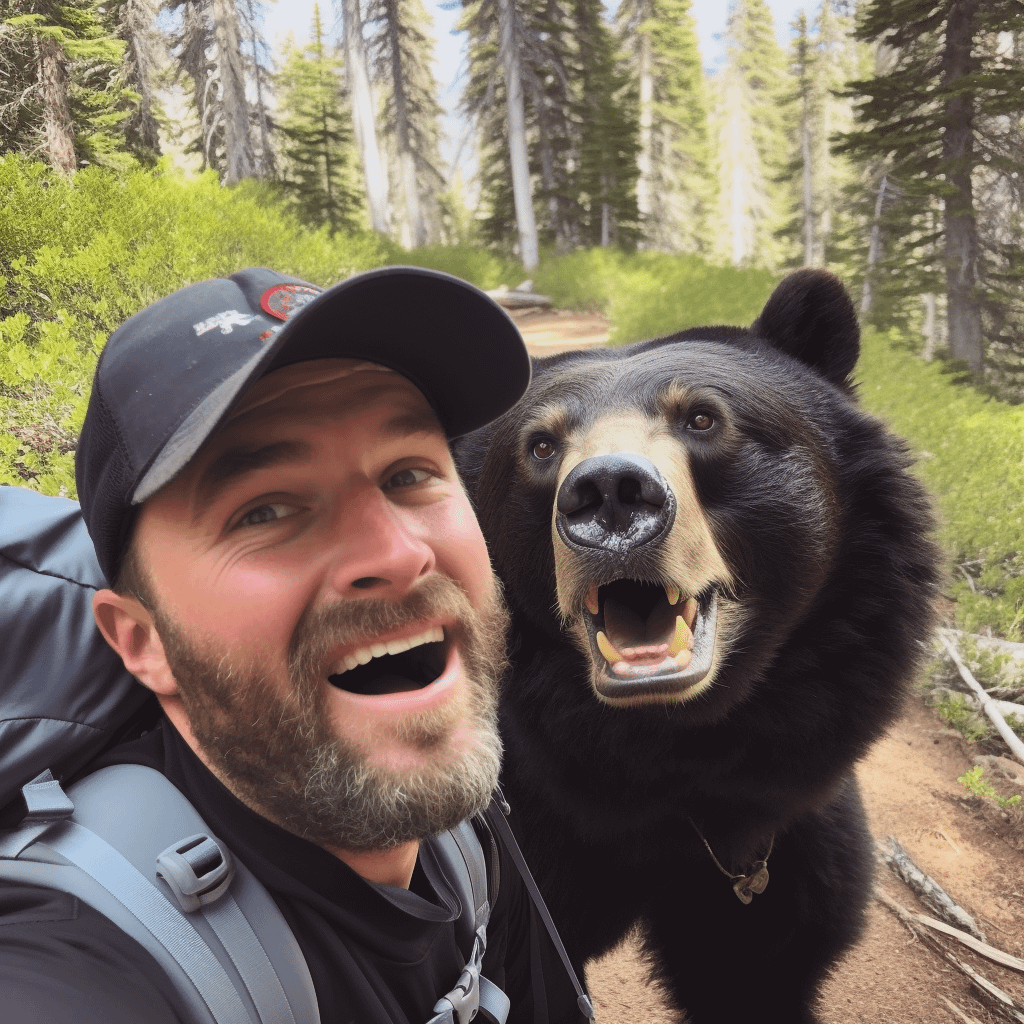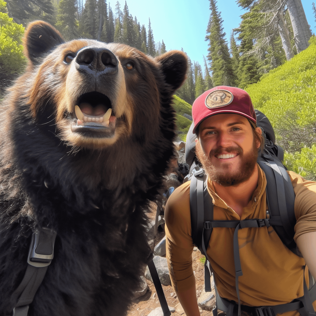 The original source of these images was a Reddit thread posted by a user named “velocd” on March 31, 2023, in the subreddit r/midjourney. The thread shared 16 images of tourists taking selfies with a bear wearing a hiking bag, all of which were generated by Midjourney’s AI.