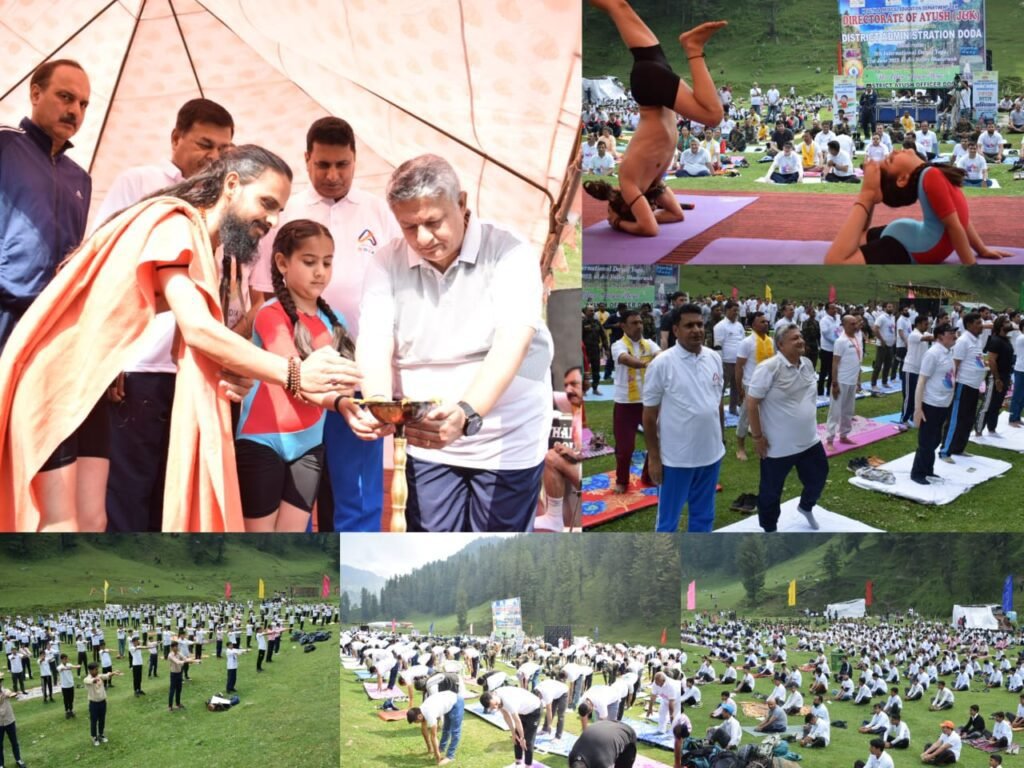 The 9th International Day of Yoga was celebrated with great enthusiasm and fervor at the picturesque Jae Valley in Bhaderwah. The event, organized by the district administration in collaboration with various departments and stakeholders, aimed to promote brotherhood, harmony, healthy living, and a drug-free society under the theme ‘Yoga for Vasudhaiva Kutumbakam.’