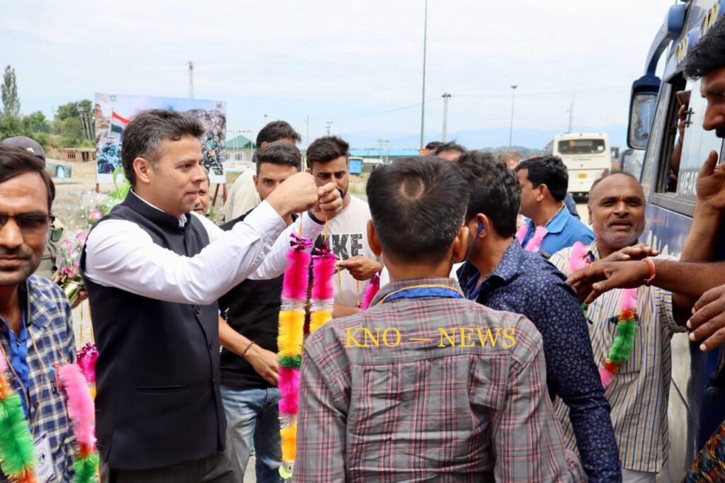 The initial group, consisting of 3488 devotees, received a heartfelt reception from Deputy Commissioner of Kulgam, Bilal Mohi-Ud-Din Bhat, Deputy Inspector General of Police south Kashmir, Rayees Mohammad Bhat, Superintendent of Police Kulgam, Sahil Sarangal, and PRI members near Nayvuga tunnel in Qazigund.