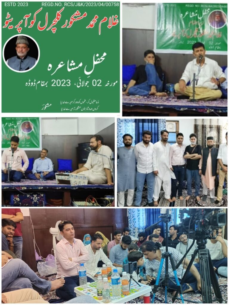 The Gulam Mohammad Mashkoor Cultural Cooperative recently organized a captivating multilingual Mushaira at the prestigious J.R Films studio in Doda. The event, held on July 2, 2023, aimed to celebrate the rich cultural heritage of the region and pay tribute to the esteemed Late Shri Ghulam Mohammad Naik Mashkoor, a revered social worker, poet, scholar, and political luminary.