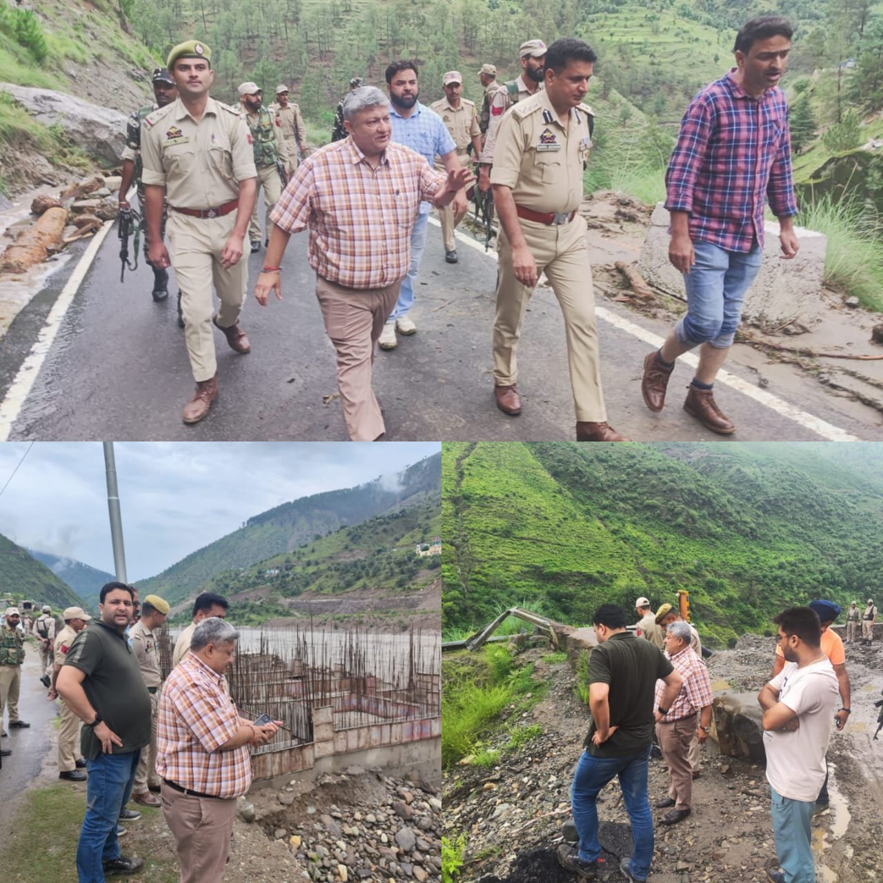 The Deputy Commissioner of Doda, Vishesh Paul Mahajan, accompanied by SSP Doda, Abdul Qayoom, and SDM of Thathri Athar Amin, conducted an urgent visit to the Thathri area to assess the damages caused by heavy rainfall in the entire Sub Division and evaluate the availability of essential services. The inspection was prompted by the recent torrential downpour that had partially affected roads and raised concerns about public safety.