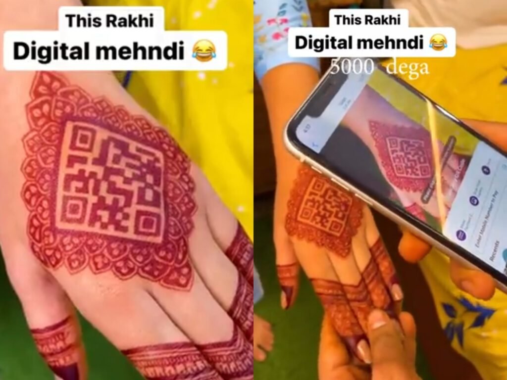Adding a touch of humor and modernity, a Twitter user shared a delightful video where a girl had designed a QR code using mehendi on her hand. The ingenious idea was to have her brother scan the QR code and transfer the Raksha Bandhan gift directly, adding a digital twist to the traditional gifting ritual.