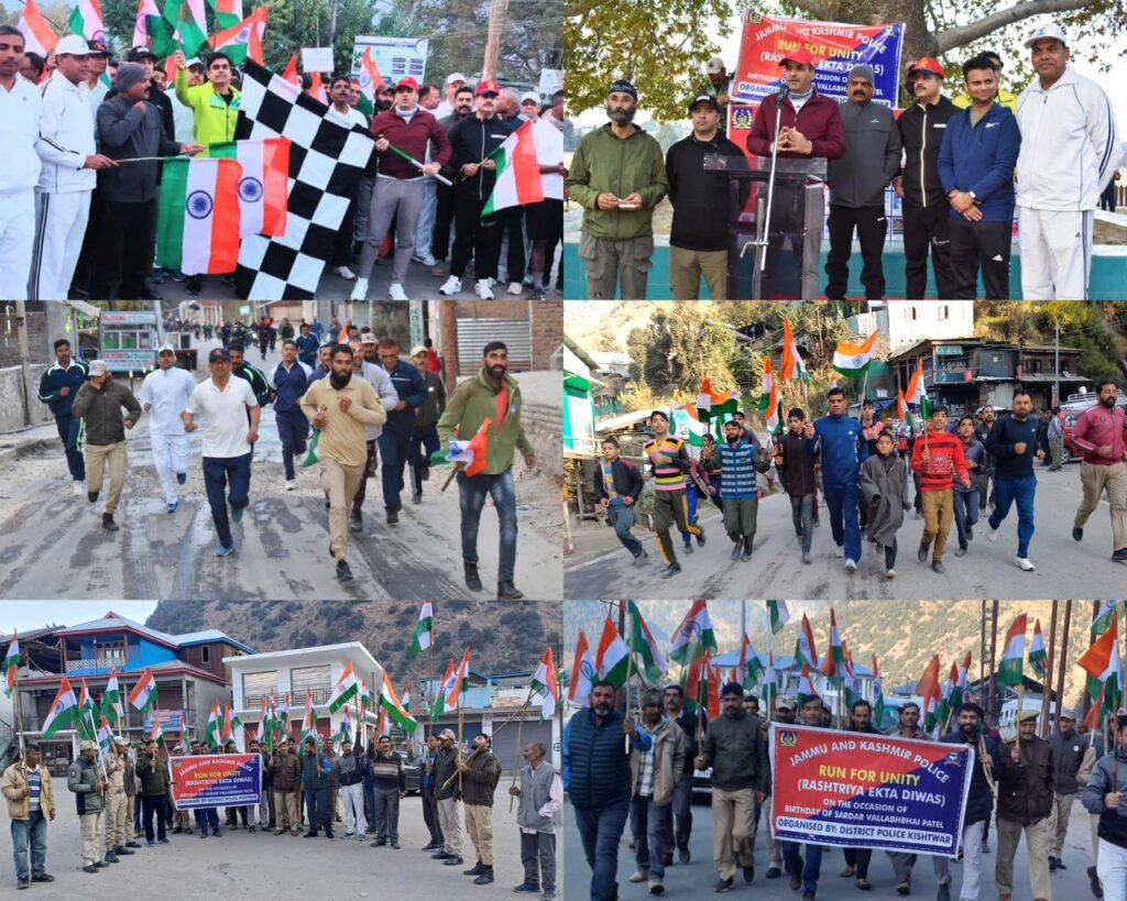 Kishtwar – In a fitting tribute to the legacy of Sardar Vallabhbhai Patel, popularly known as the “Iron Man of India,” the Kishtwar Police, under the leadership of Senior Superintendent of Police (SSP) Kishtwar, Khalil Poswal-JKPS, organized a “Run for Unity” marathon on the eve of Sardar Vallabhbhai Patel‘s 148th Birth Anniversary. This significant event extended its celebration to the police station levels across the Kishtwar district.
