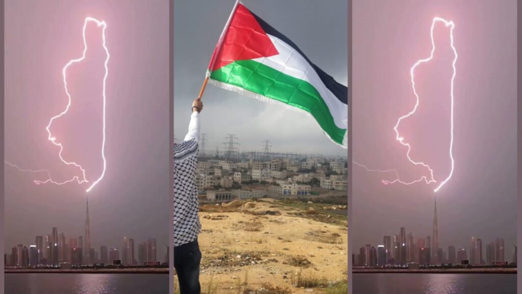 The video, which has currently nearly 12 million views, originally captured by Dubai-based photographer Zohaib Anjum, shows a single lightning strike traveling down the side of the skyscraper. Some viewers have claimed the path of the lightning resembles the map of Palestine. This has led to interpretations by some Muslims as a potential sign from Allah, urging intervention in the ongoing conflict between Israel and Palestine.