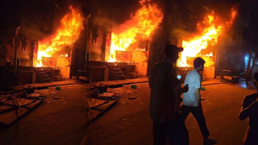 A fire broke out this evening at approximately 8 PM in the main market of Thathri town in Doda district of Chenab Valley in Jammu and Kashmir, causing significant damage to four shops, including the complete destruction of a mobile shop owned by Adnan Zargar, son of Akther Hussain Zargar, a resident of Jangalwar.