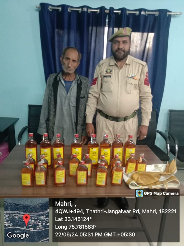 According to a press release issued to The Chenab Times by the police, the individual, identified as Madan Lal, son of Khushi Ram, a resident of Mandrana Mahalla, Doda, was caught with a considerable quantity of illicit liquor. The arrest was made during a targeted operation aimed at curbing the menace of illegal liquor trade in the region.