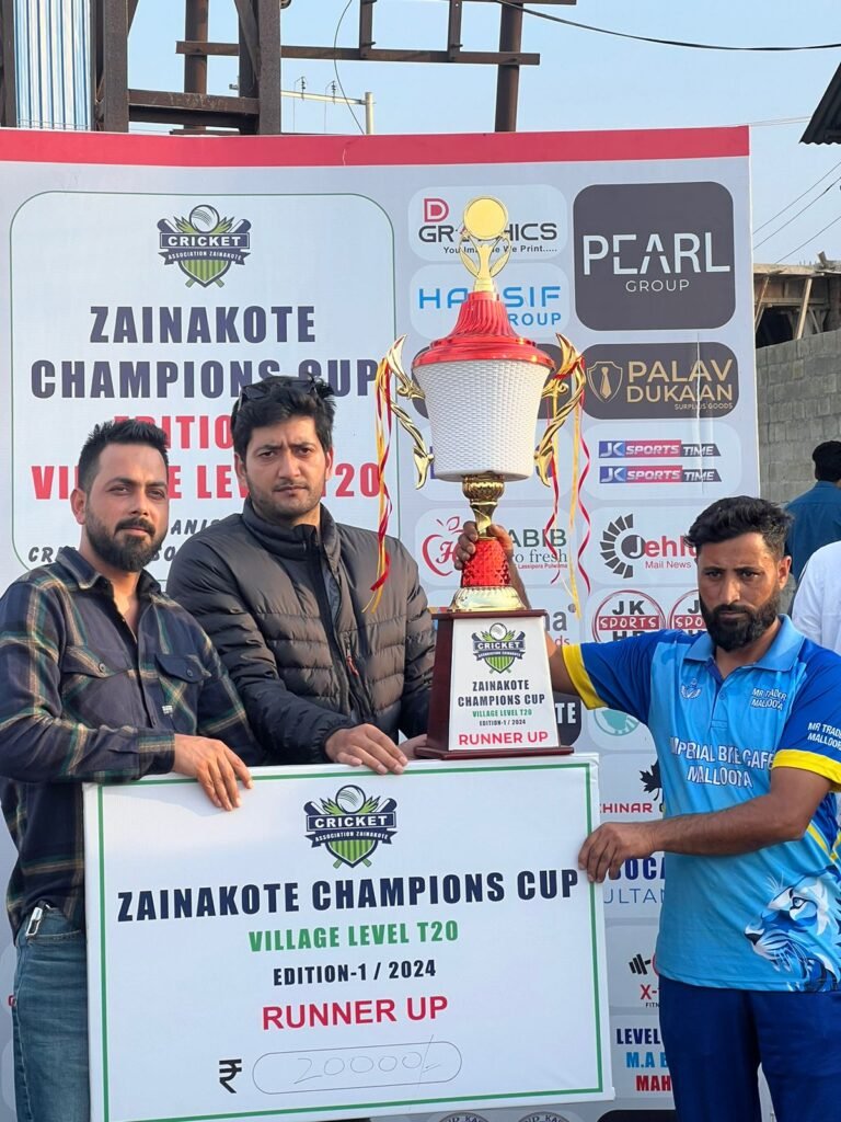 The tournament, organized by the Zainakote Cricket Association, attracted enthusiastic support from the local community, showcasing the rising cricketing talent in the region and underscoring the role of sports in fostering unity. Among the attendees was Mohammad Sahil Masoodi, a respected social youth activist, who was present as the esteemed guest of honor. Masoodi’s involvement underscored the tournament’s commitment to youth empowerment and sports development in Zainakote.