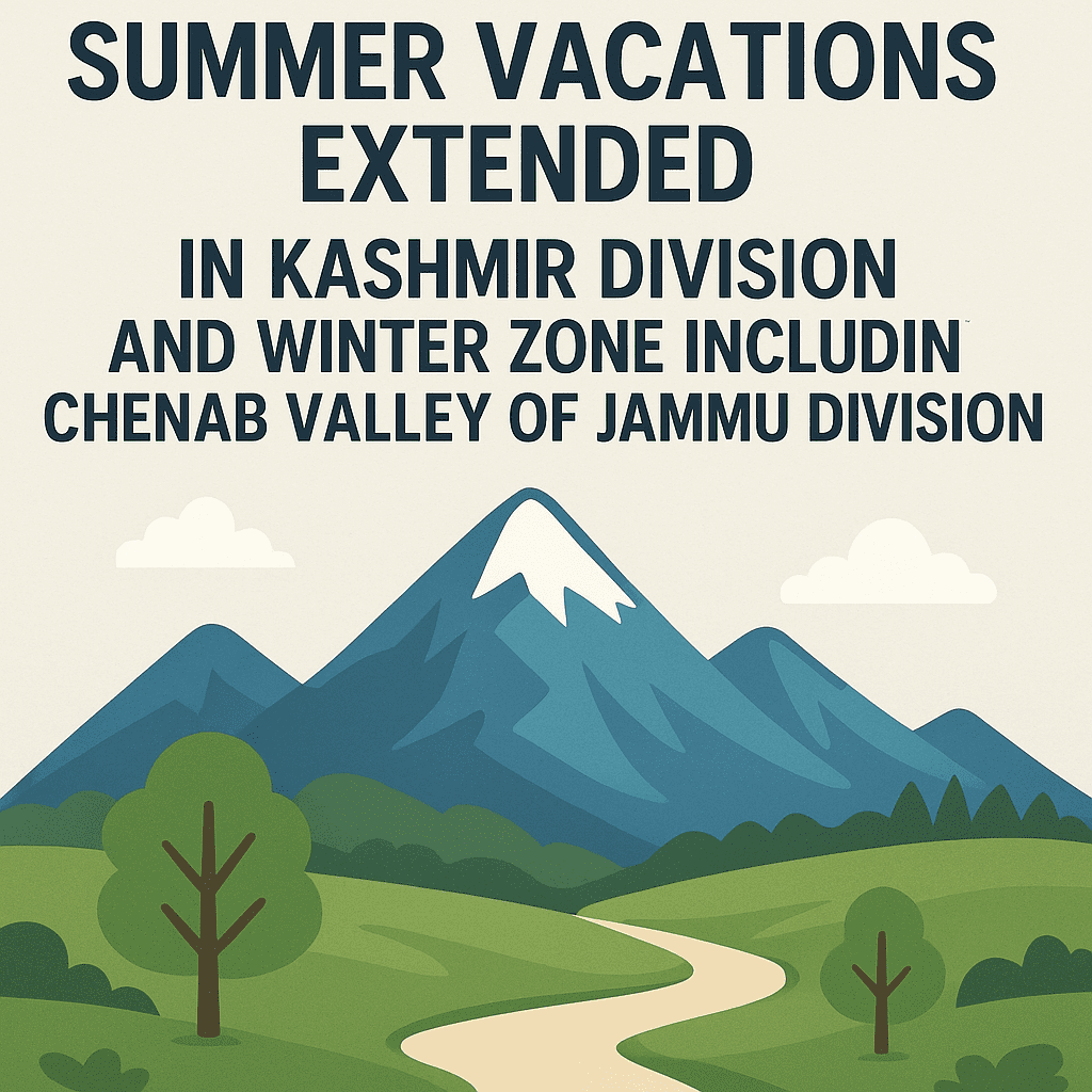Jammu, July 2 — In a partial modification of earlier directives, the Government of Jammu and Kashmir on Tuesday extended the summer vacations in all Government Degree Colleges across Kashmir Division and Jammu Division (falling under the Winter Zone) until July 5, 2025 (Saturday).