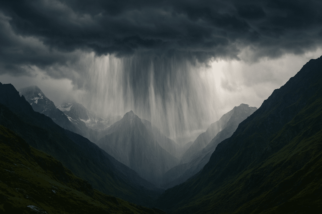 This phenomenon is most common in mountainous regions such as the Himalayas, where warm, moist air rises and collides with cold air in the upper atmosphere. This rapid interaction causes clouds to form quickly and store large amounts of moisture. When they can no longer hold it, they collapse, releasing torrents of rain in a violent, localized downpour.