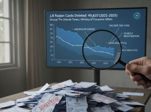 Information was available with The Chenab Times that the deletions followed a data-analytics exercise using Aadhaar, income tax, vehicle registration and other databases to identify ineligible beneficiaries, including those over 100 years of age, duplicates, silent cards and single-member cards registered under minors.