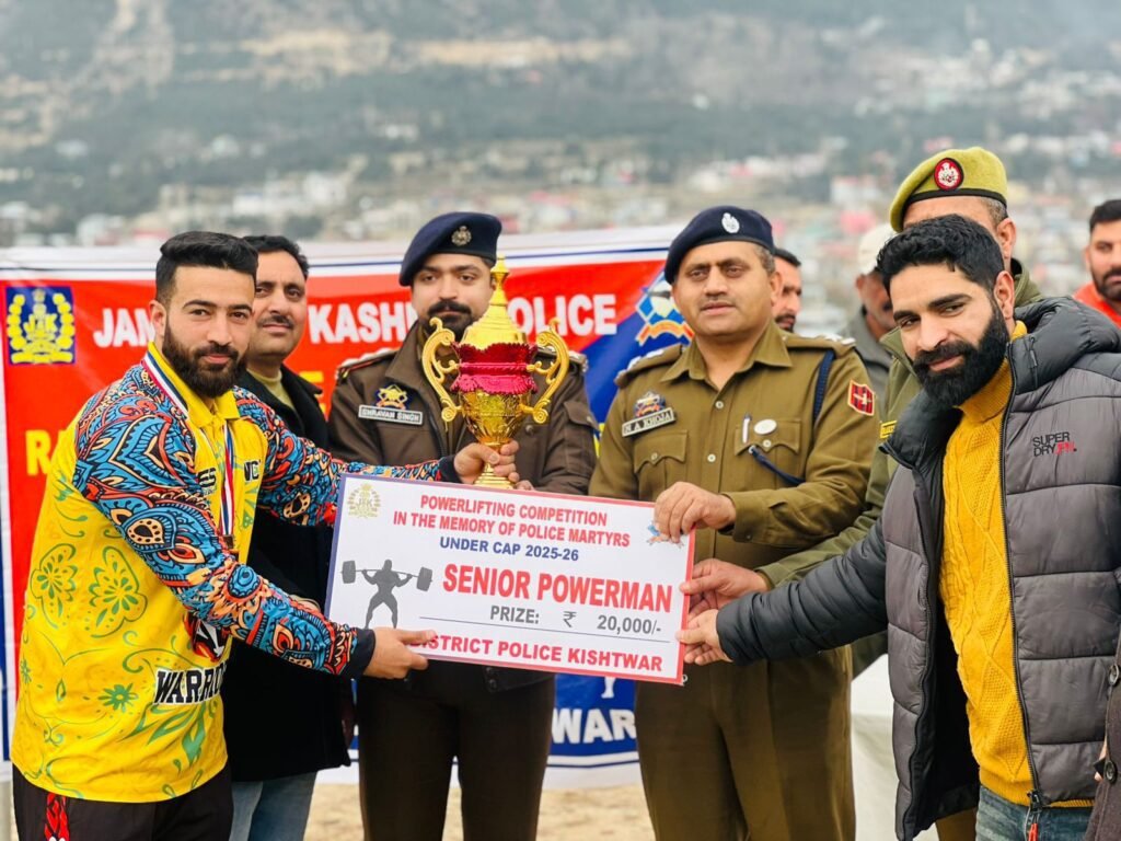 Jammu and Kashmir Police in Kishtwar on Sunday organised a Powerlifting Championship at the District Police Lines (DPL) under the Civic Action Programme (CAP), providing a competitive platform for young athletes from across the district to showcase their strength and sporting talent. The event witnessed enthusiastic participation and a large turnout of spectators, reflecting the growing interest in strength sports in the region.