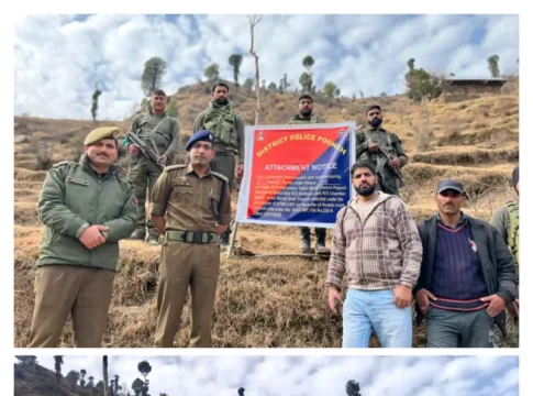 The land belongs to Abdul Aziz, son of Ahmeda Lone, a resident of Chamber Kanari in Tehsil Mandi, District Poonch. Abdul Aziz exfiltrated to Pakistan or Pakistan-occupied Jammu and Kashmir years ago and has since operated as a terror handler, engaging in activities hostile to India’s security and national sovereignty. Due to his persistent evasion of legal proceedings, a court declared him a proclaimed offender. Poonch Police made sustained efforts to arrest him but found him beyond reach, prompting the court to order the property attachment.